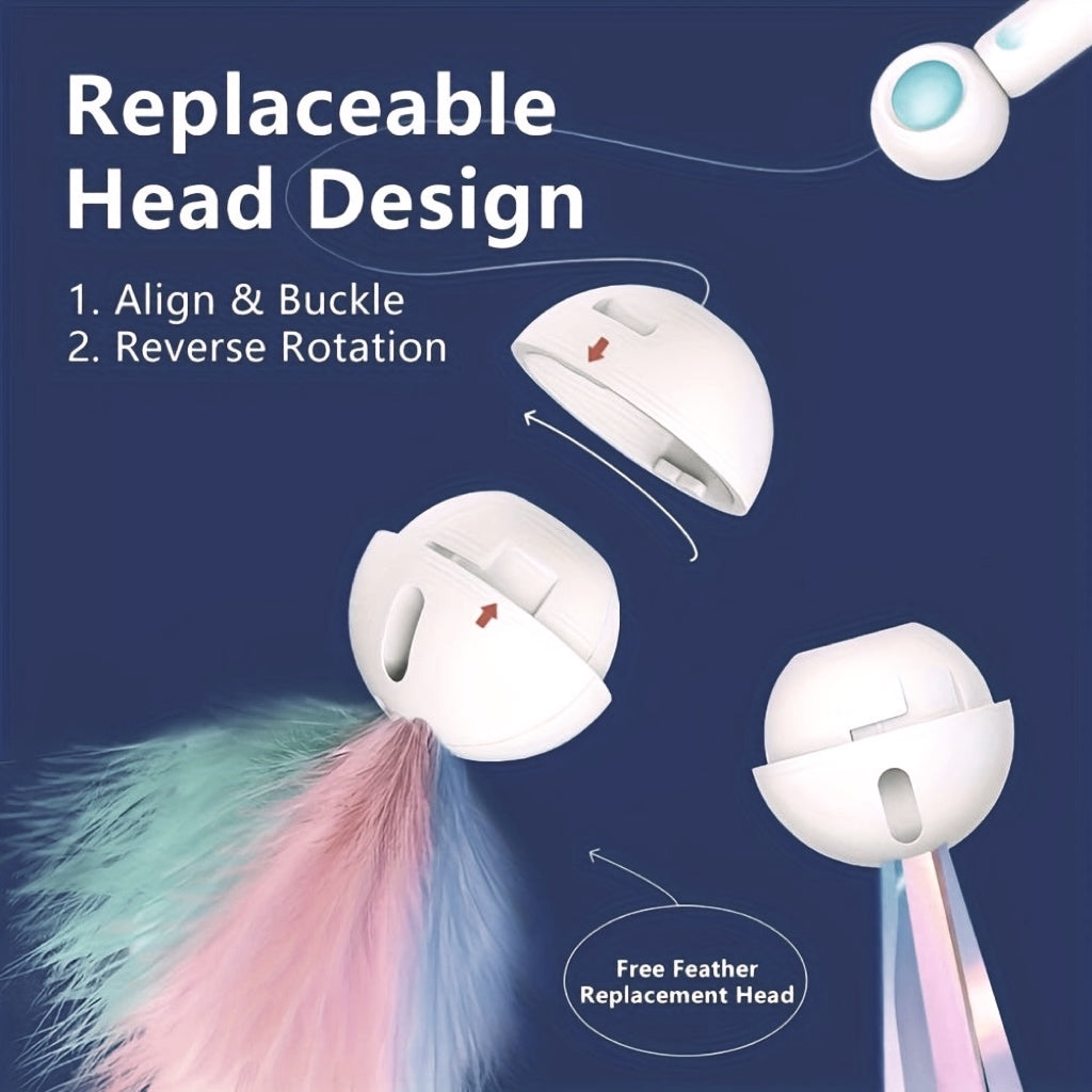 Bacchetta Gioco Retrattile per Gatti con Piume + Testine di Ricambio/Retractable Cat Teaser Wand with Feather + Replacement Heads